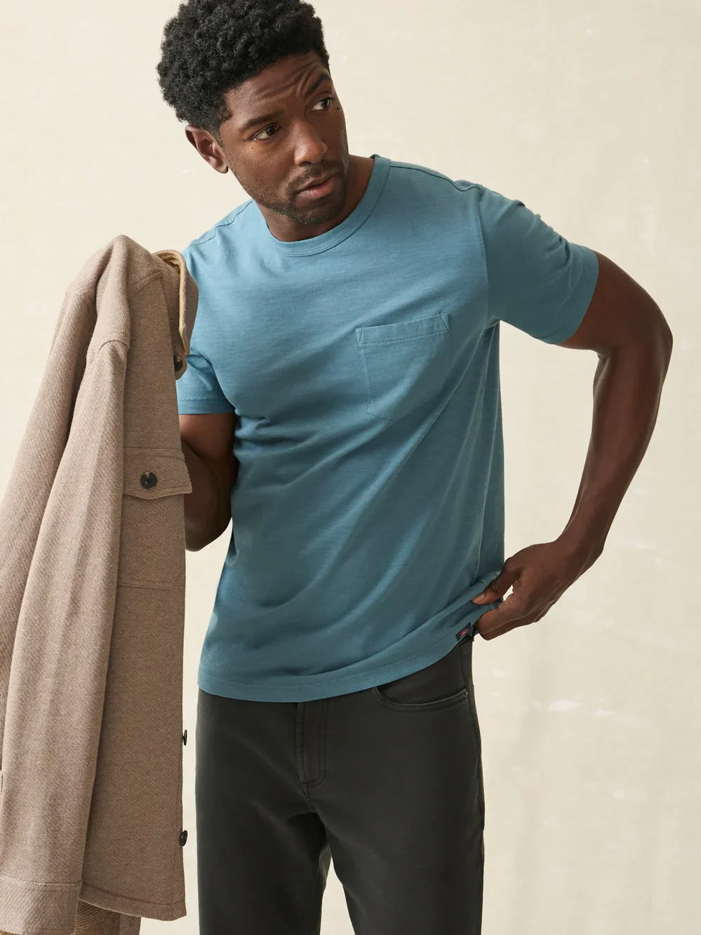 Stretch Terry 5-Pocket Pant + Teal Harbor Sunwashed Pocket Tee