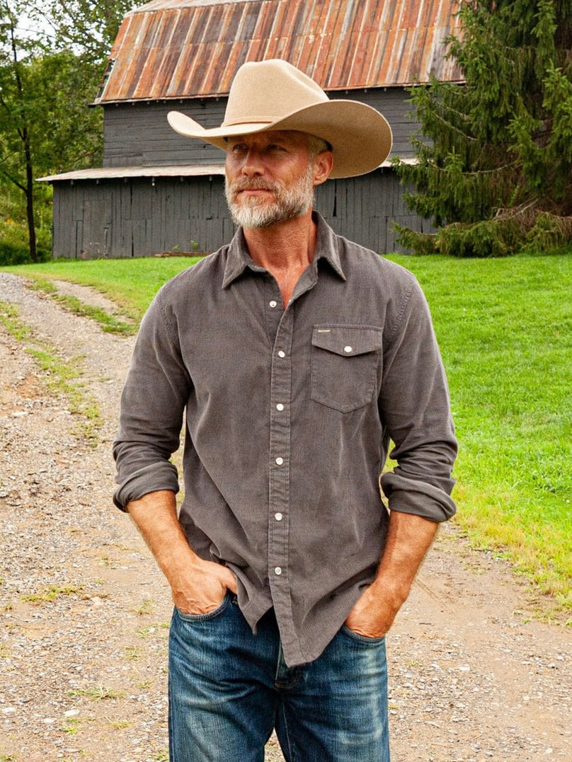 Charcoal - Long Sleeve Corduroy Pearl Snap