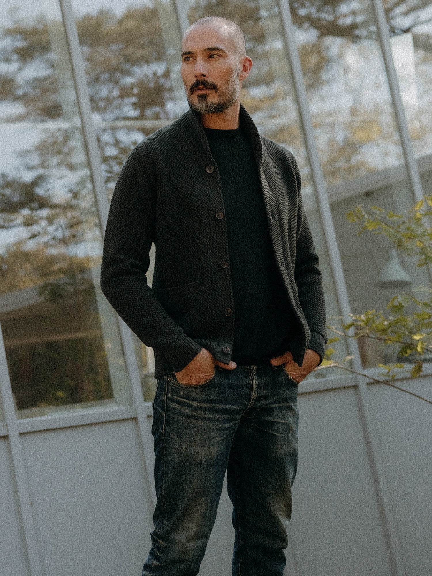 A classic shawl collar cardigan, The Crawford is just as comfy on a morning hike as it is curled up with a book by the fire. Handsome seed stitch construction and ribbed accents keep the vibes vintage, while a versatile silhouette means The Crawford can lend some sophistication to your most casual outfit. And with 100% BCI cotton, this cardigan is as Responsible as it is refined.