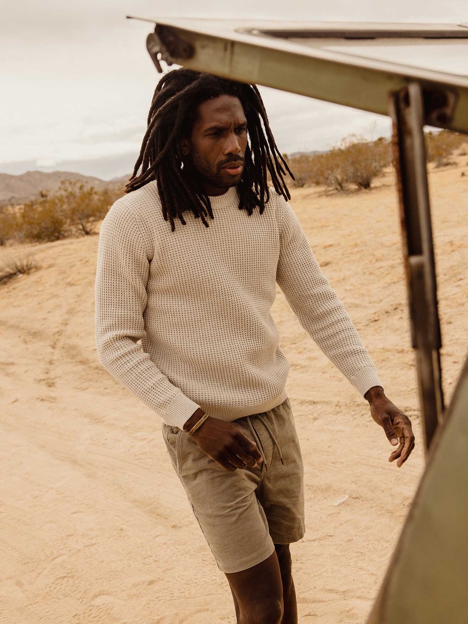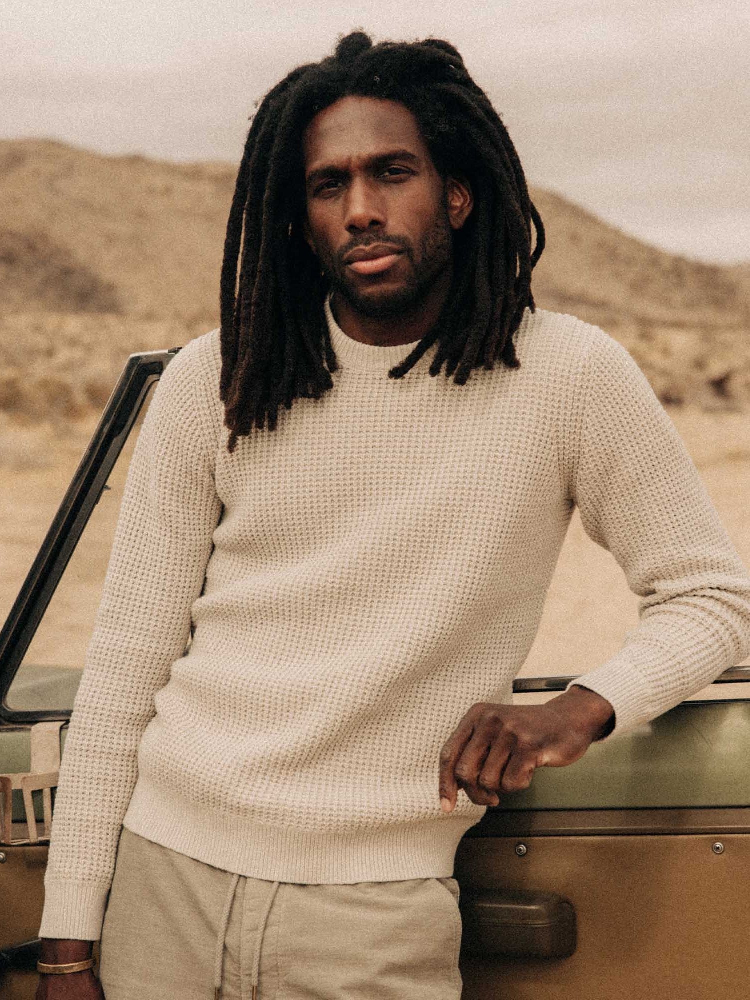 With its breathable cotton-linen blend and waffle-knit construction, The Ranger Sweater strikes that rare balance between texture and lightness. Easy to layer, easy to wear—this one earns its spot in the rotation from spring through early fall.