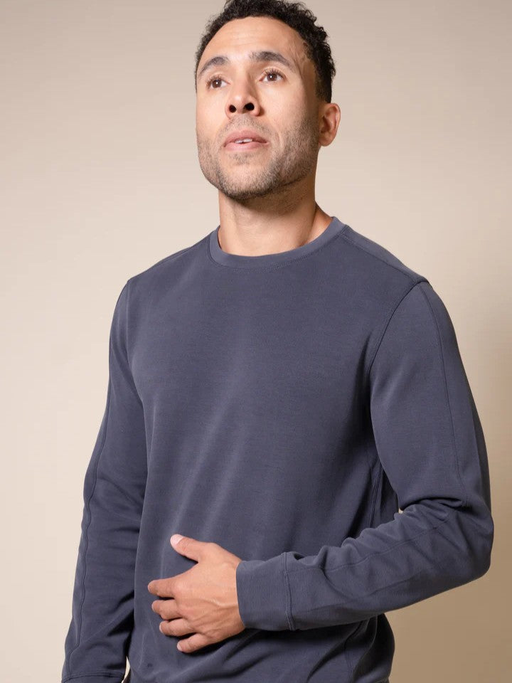 Introducing the Later On Long Sleeve Crew in a deep Indigo Night hue—an easy throw on for cool autumn nights. This bestselling style has a relaxed fit with a 4-way stretch for unrestricted movement. A complete level up to uncompromised comfort and style.