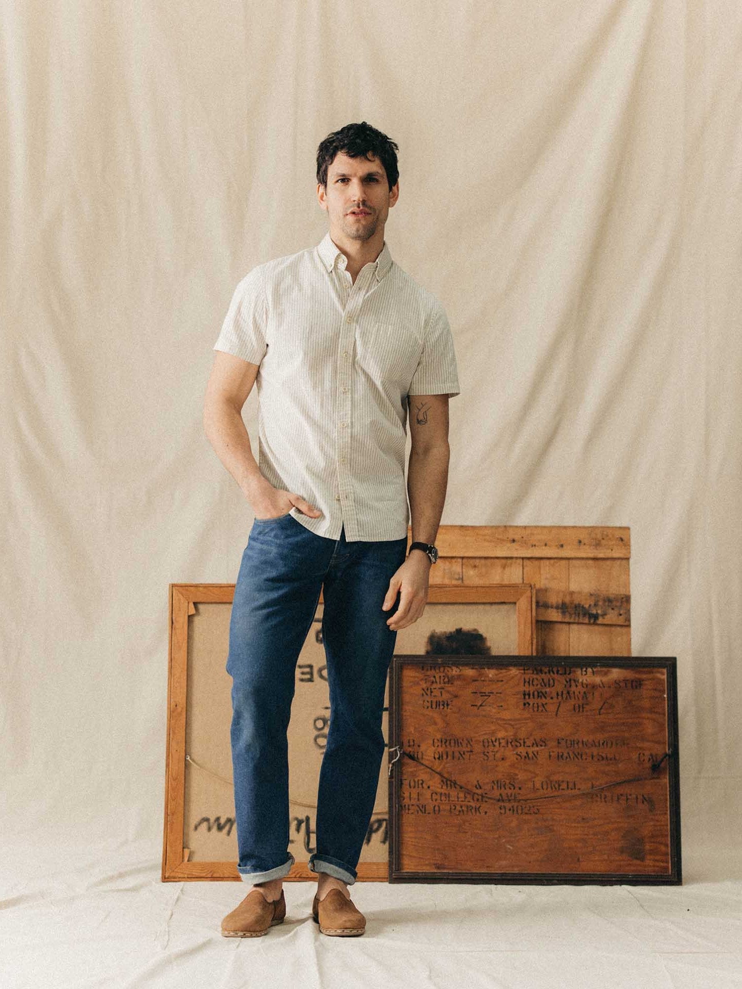 Equal parts tailored and easygoing, The Short Sleeve Jack in Indigo Stripe offers a clean silhouette that feels like a well-worn favorite from the start. Woven from indigo-dyed organic cotton, it’s built to soften, fade, and take on rich character the longer it stays in your rotation.