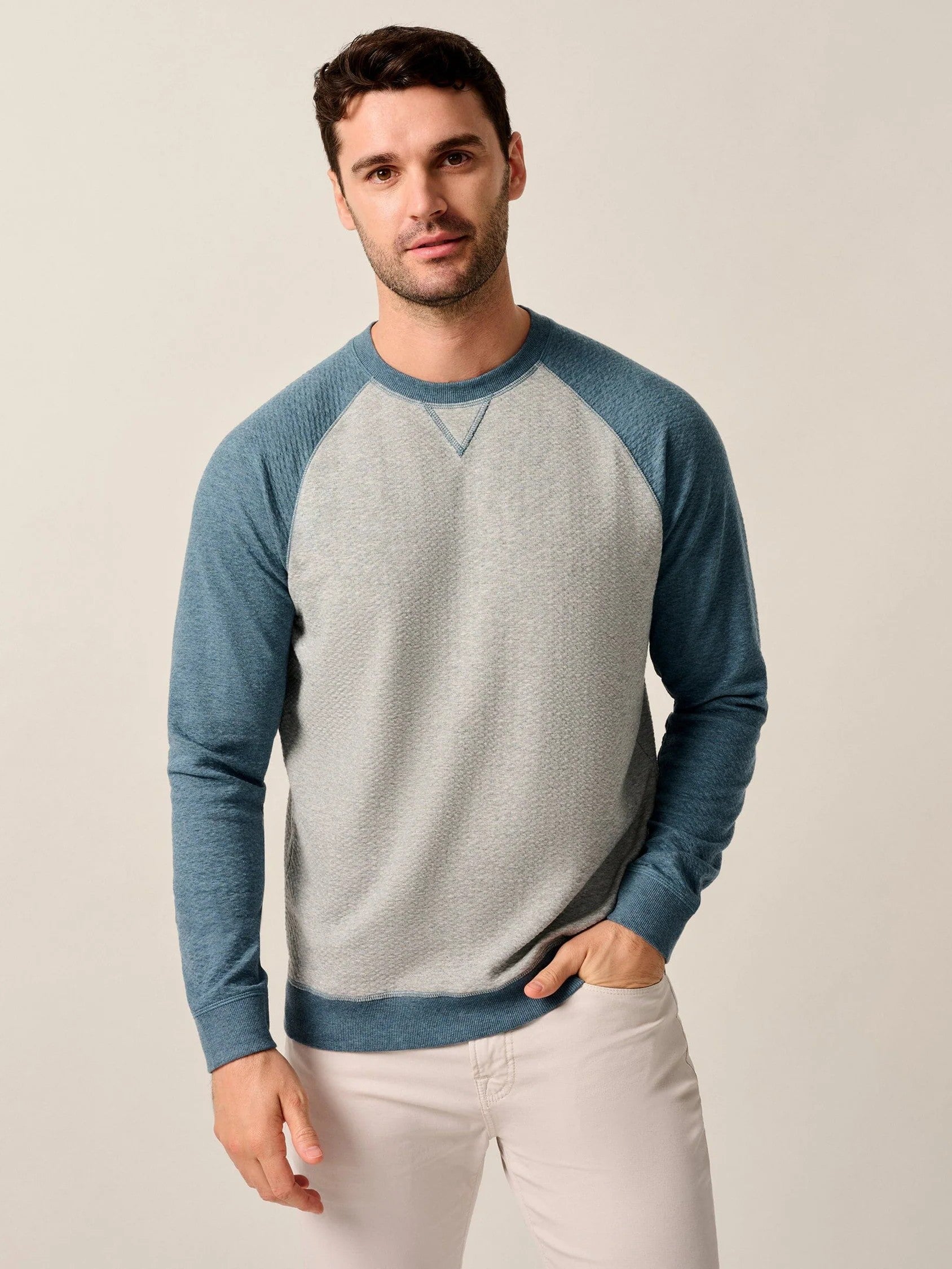 Named for its distinctive baseball style, this sweater is made with what we called a ripple knit for it's noticable texture. It's finished with classic contrast sleeves and the "whistlestop" detail at the neck for good measure but what we love most is the unbelievably soft fabric.