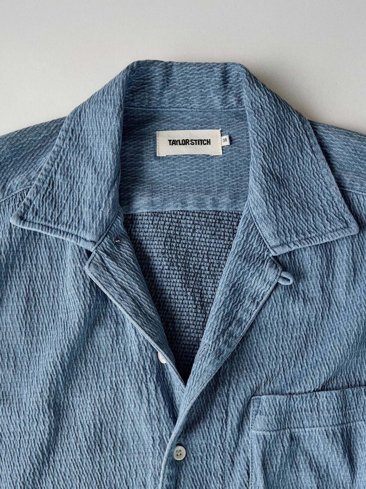 The Hawthorne Shirt returns in a richly textured crepe fabric that’s been bleach washed for a soft, well-traveled finish. With its tailored camp collar silhouette and a versatile indigo finish that will fade and evolve with wear, this one’s poised to earn a prize position in your spring and summer rotation.